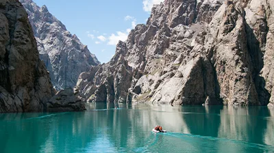 The approach to the lake is quite marshy, and it can only be accessed by an off-road vehicle. Since the lake is located near the Kyrgyz-Chinese border, a border permit is required.